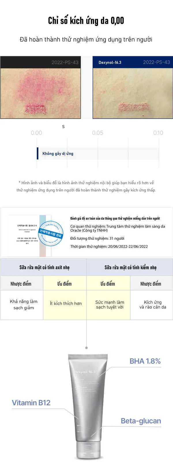 Nước tinh khiết, axit myristic, glycerin, methylpropanediol, kali hydroxit, coco-glucoside, axit lauric, axit palmitic, axit stearic, axit salicylic, glyceryl stearat, cyanocobalamin, beta-glucan, sorbitan olivate, dinatri EDTA, 1,2-hexanediol, hương liệu